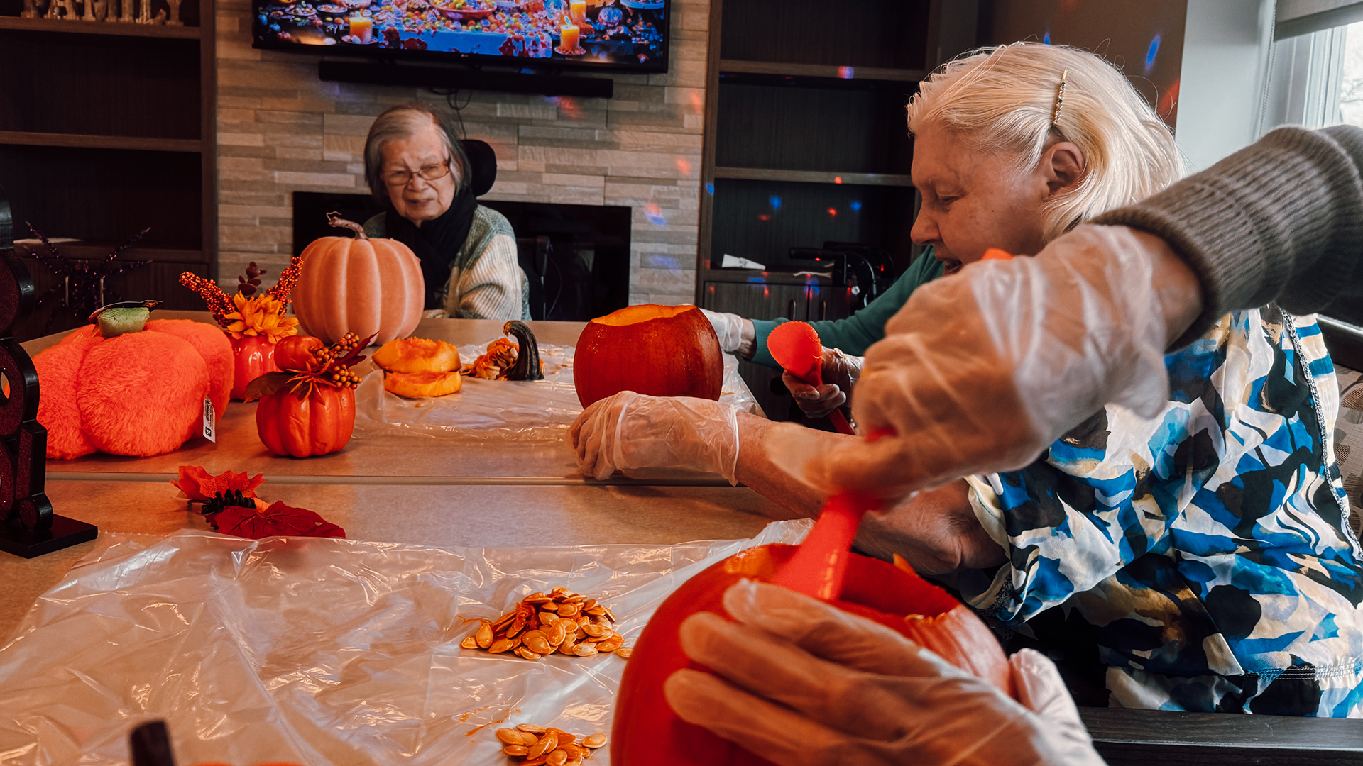 Halloween spirit was in full swing at New Vista this week as residents and staff joined forces for a pumpkin carving day.